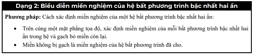 - Dạng 2: Biểu diễn miền nghiệm của hệ bất phương trình bậc nhất hai ẩn