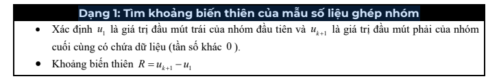 - Dạng 1: Tìm khoảng biến thiên của mẫu số liệu ghép nhóm